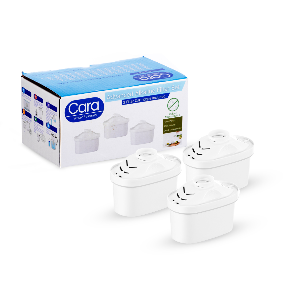 Upgrade your hydration with the Cara Alkaline Replacement Filters 3-Pack, the ultimate solution for clean, mineral-enriched water. These advanced filters are tailored for the 2.6L Cara Water Filter Jug, combining purification with pH enhancement for healthier and more refreshing water.